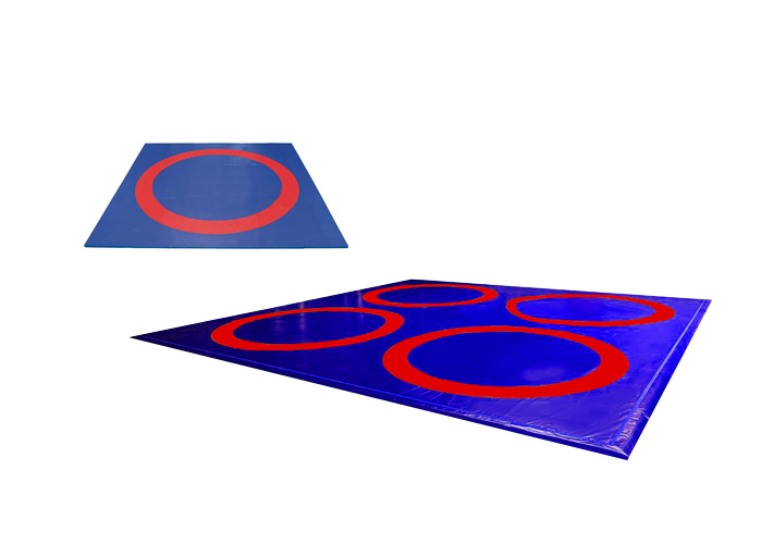 Aire de protection polyvalente pour l’initiation au sport de lutte. 1 Face Marquage unique 1 Face 4 Marquages Montage et démontage rapides. Réalisé en PVC 1000 deniers classée au feu M2 et sans phtalates. Tous les cercles sont soudés. Ces tapis sont composés d’une sous-couche de mousse polyéthylène d’une densité de 28 kg/m3 pour le confort.